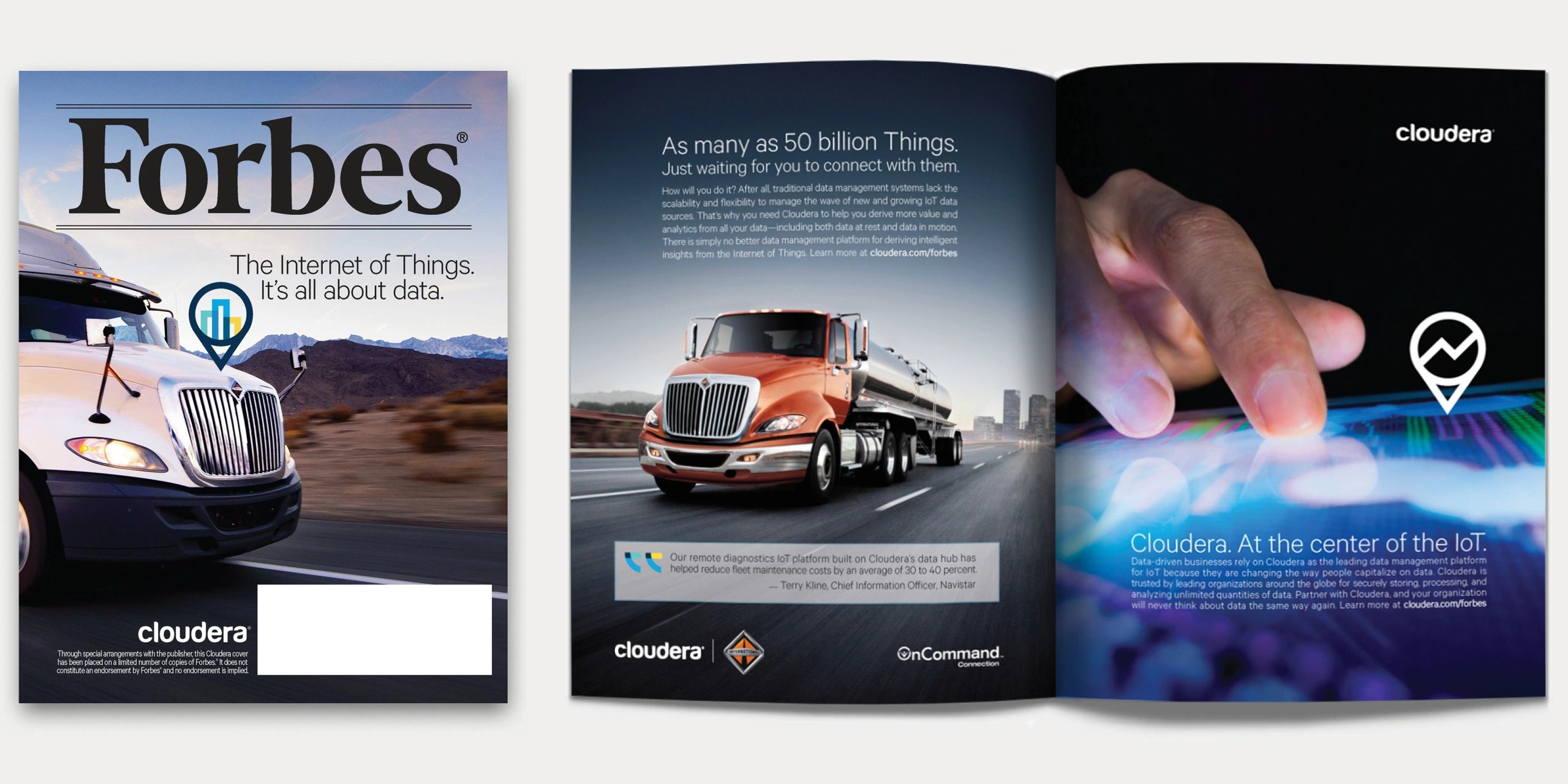 Organizations were drowning in IoT data—billions of connected devices generating insights, but lacking the platform to make sense of it all at scale. Cloudera's positioning went beyond data management infrastructure—it was about unlocking operational intelligence. The campaign positioned Cloudera not as a technical solution, but as the foundation for IoT-driven efficiency and competitive advantage. By showing how organizations like Navistar use Cloudera to manage massive IoT data streams and reduce fleet maintenance costs by 30-40%, we shifted the narrative from "managing connected things" to "turning IoT data into operational value"—and proved that efficiency and scale weren't mutually exclusive.